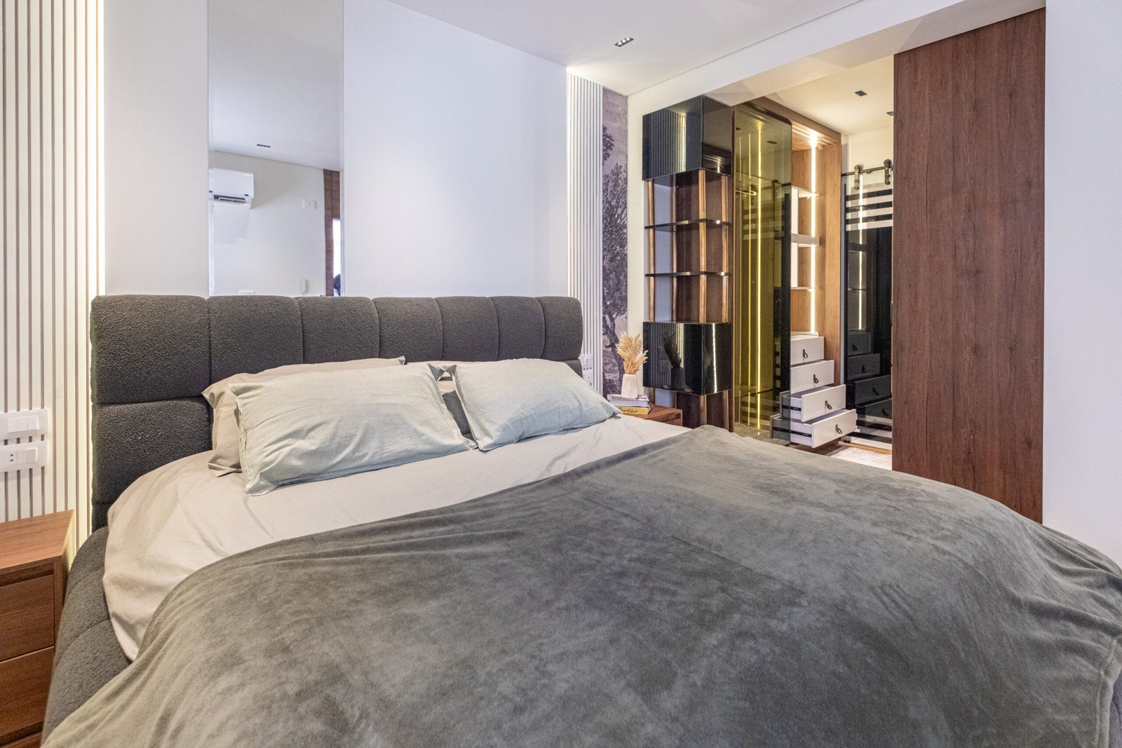 Experience ultimate comfort and sophistication with this modern upholstered bed. Designed with a soft, cushioned headboard for added relaxation, it’s perfect for reading or unwinding after a long day. The deep, textured upholstery in a sleek grey tone adds a luxurious touch to any bedroom décor, blending beautifully with both contemporary and minimalist styles. The sturdy frame ensures durability and long-lasting support, while the elegant design enhances the overall ambiance of your space.